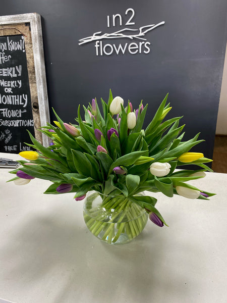 Photos shown of past work, ordering tulip colours can vary based on availability, but our florists have an excellent sense of taste and choice.